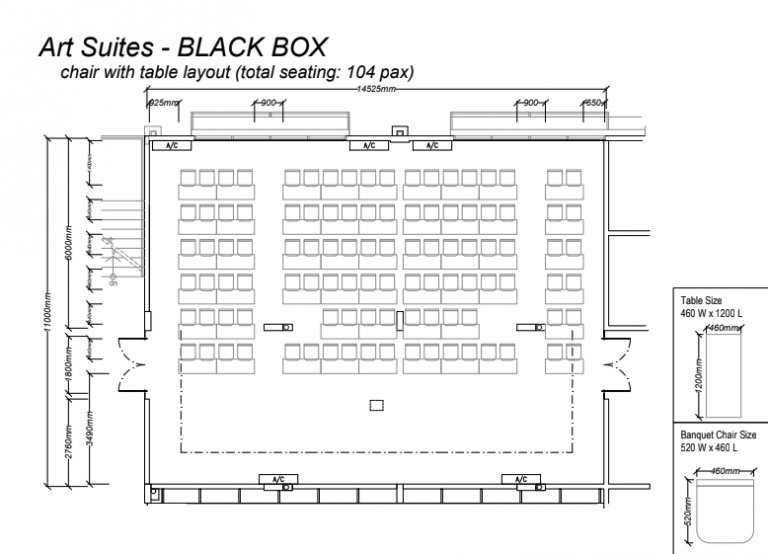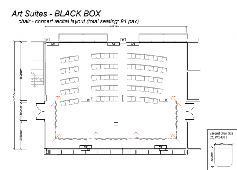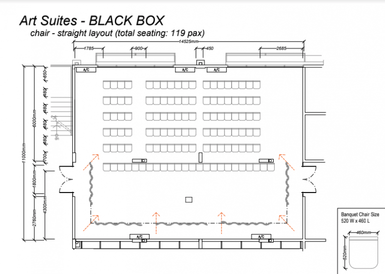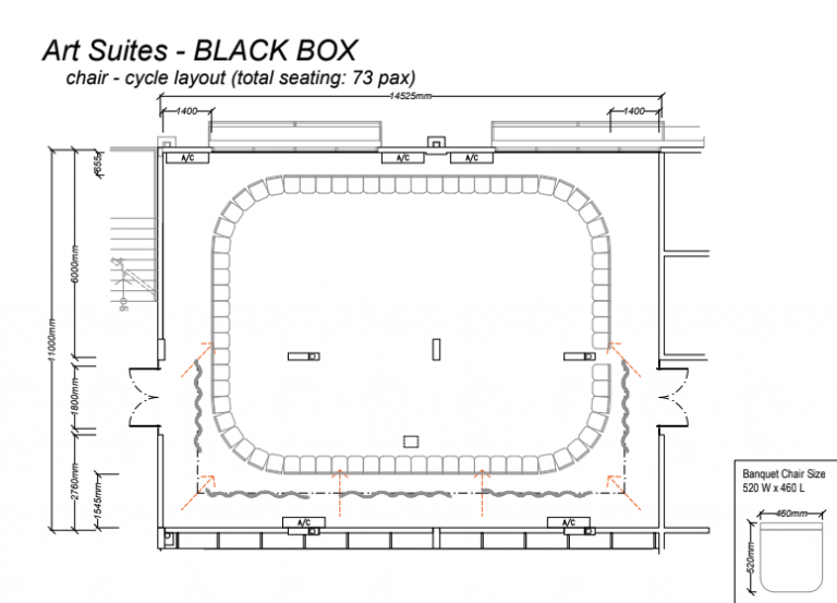 A versatile bright creative space, linked to the white box and practice suites. Includes wall lines for art exhibitions.