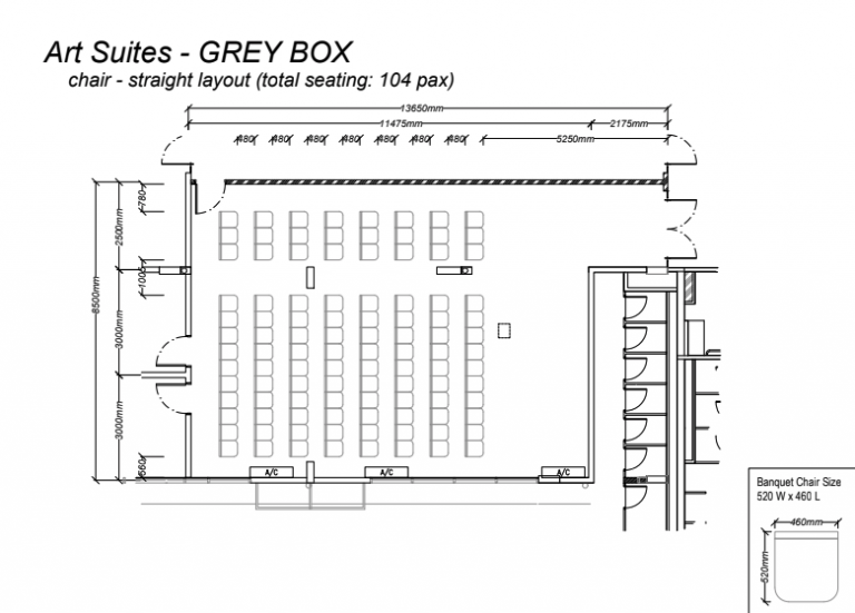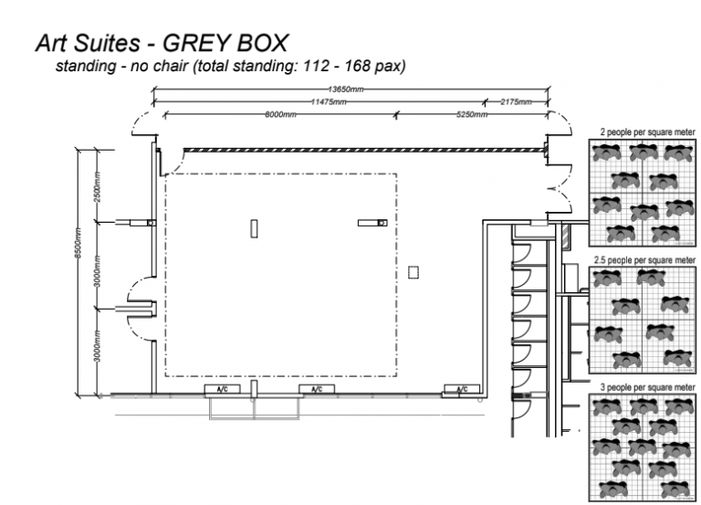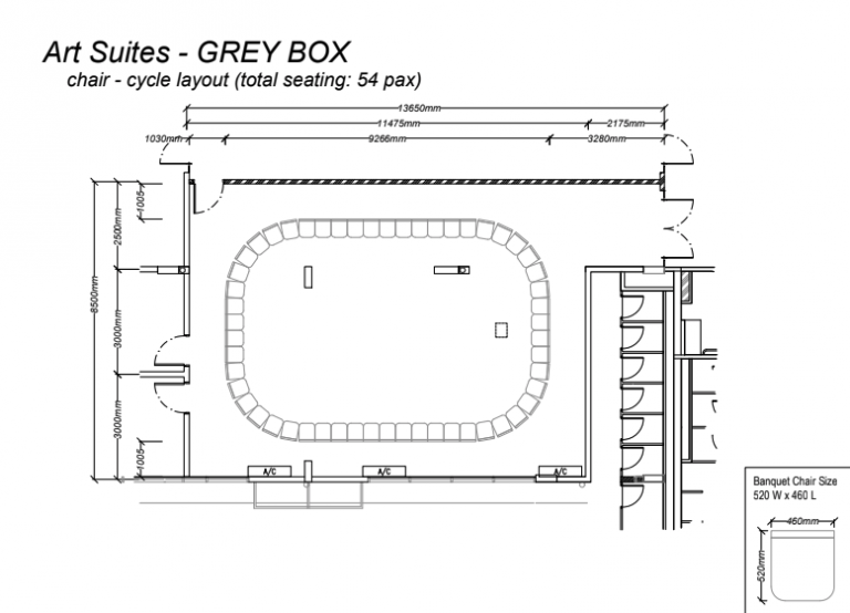 A versatile bright creative space, linked to the white box and practice suites. Includes wall lines for art exhibitions.
